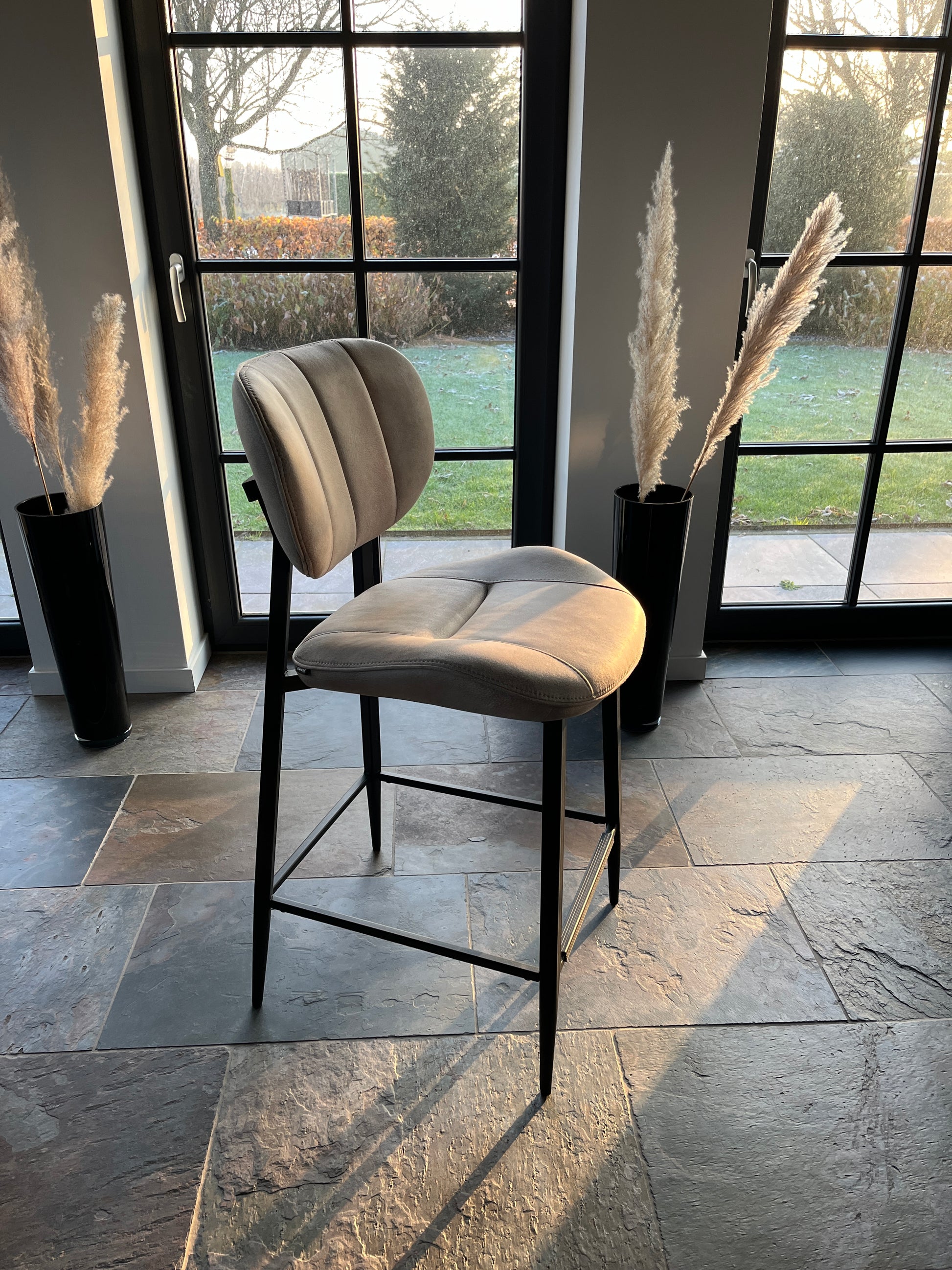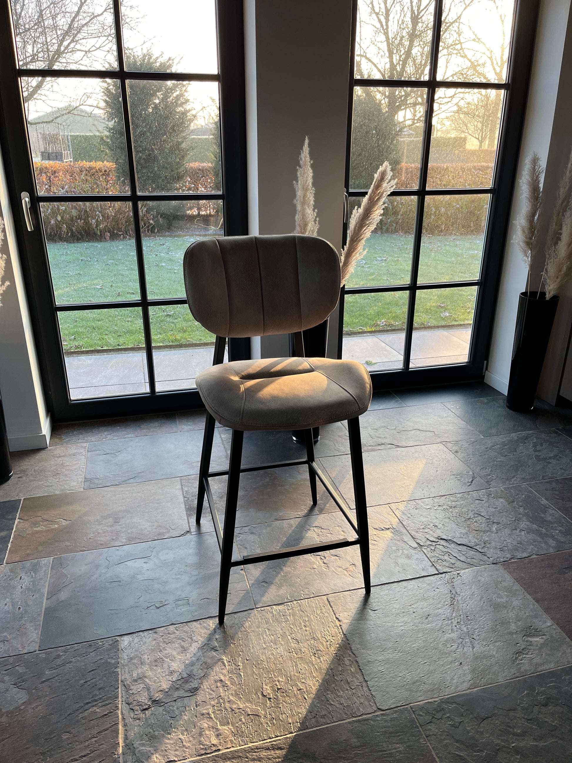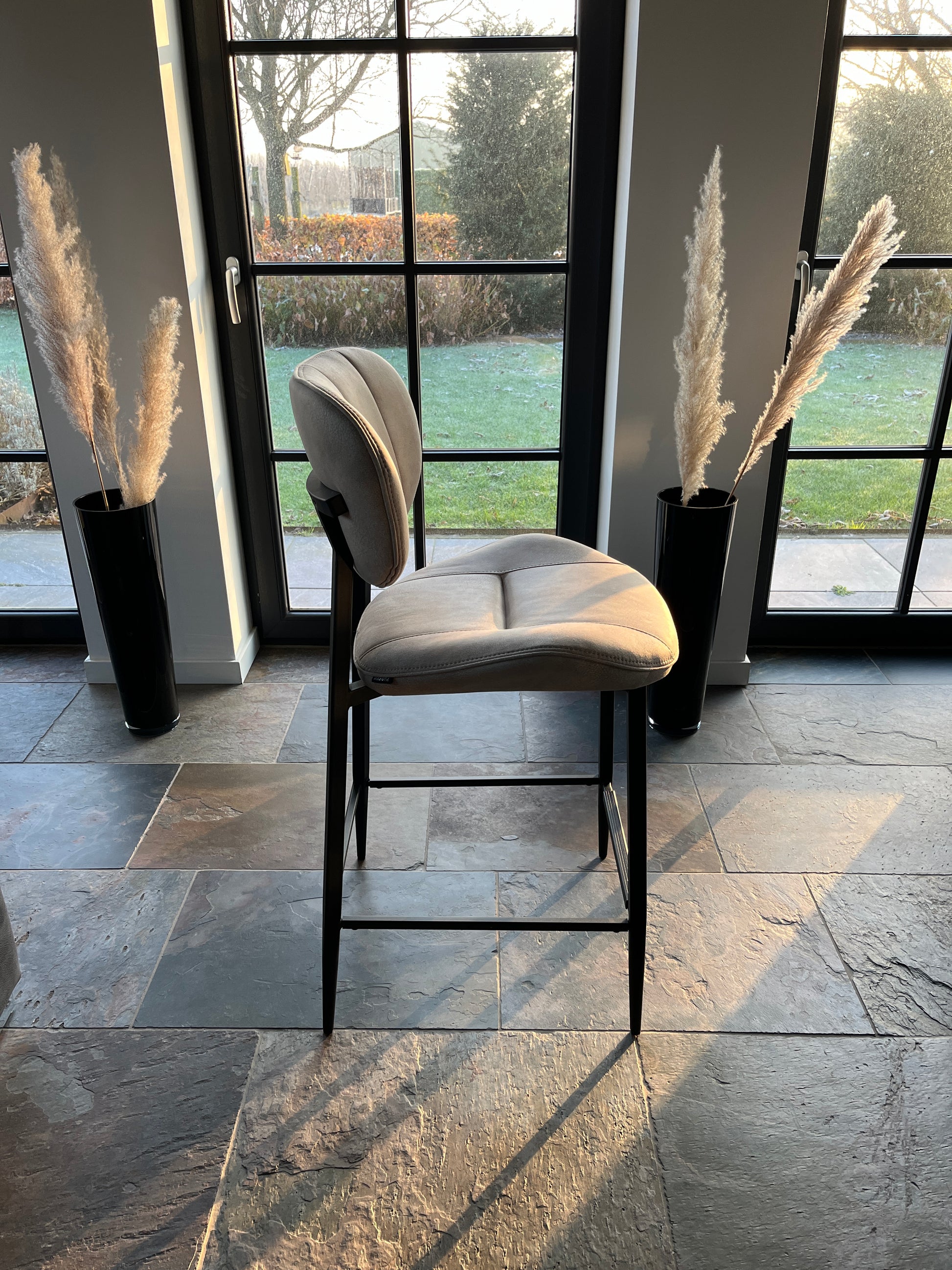 Barstoel "Carly" - 1 stoel in de kleur antraciet en taupe op voorraad