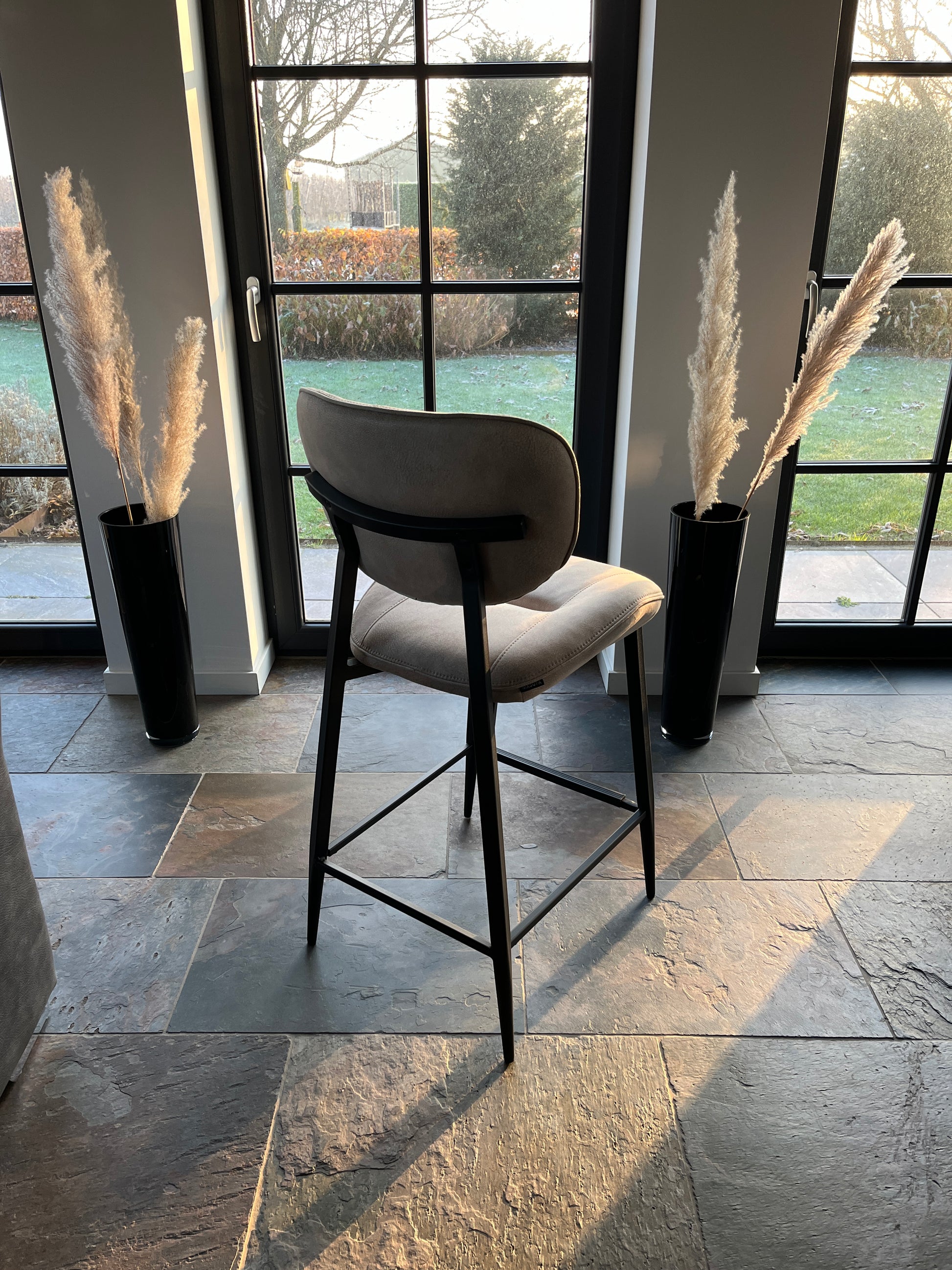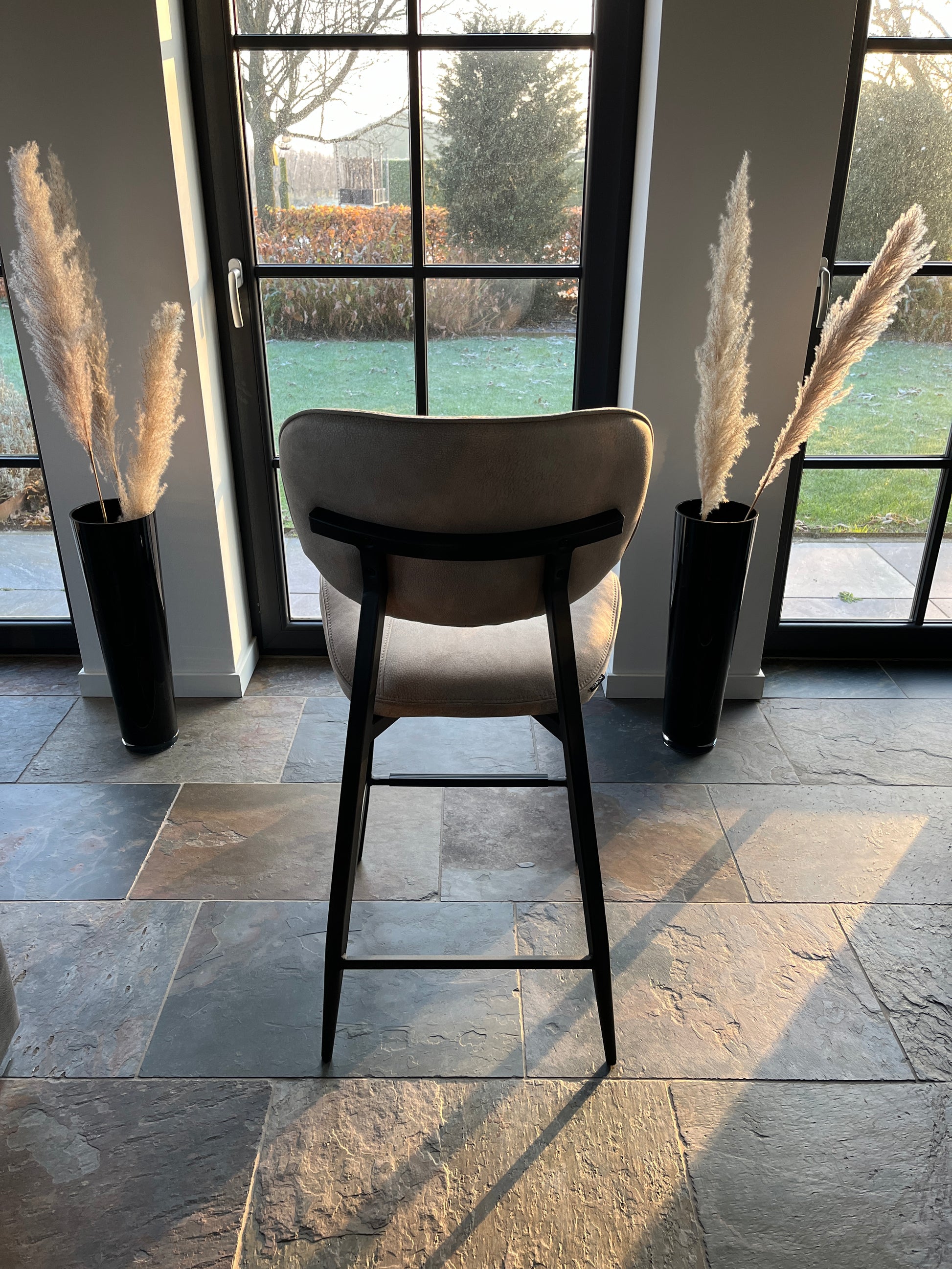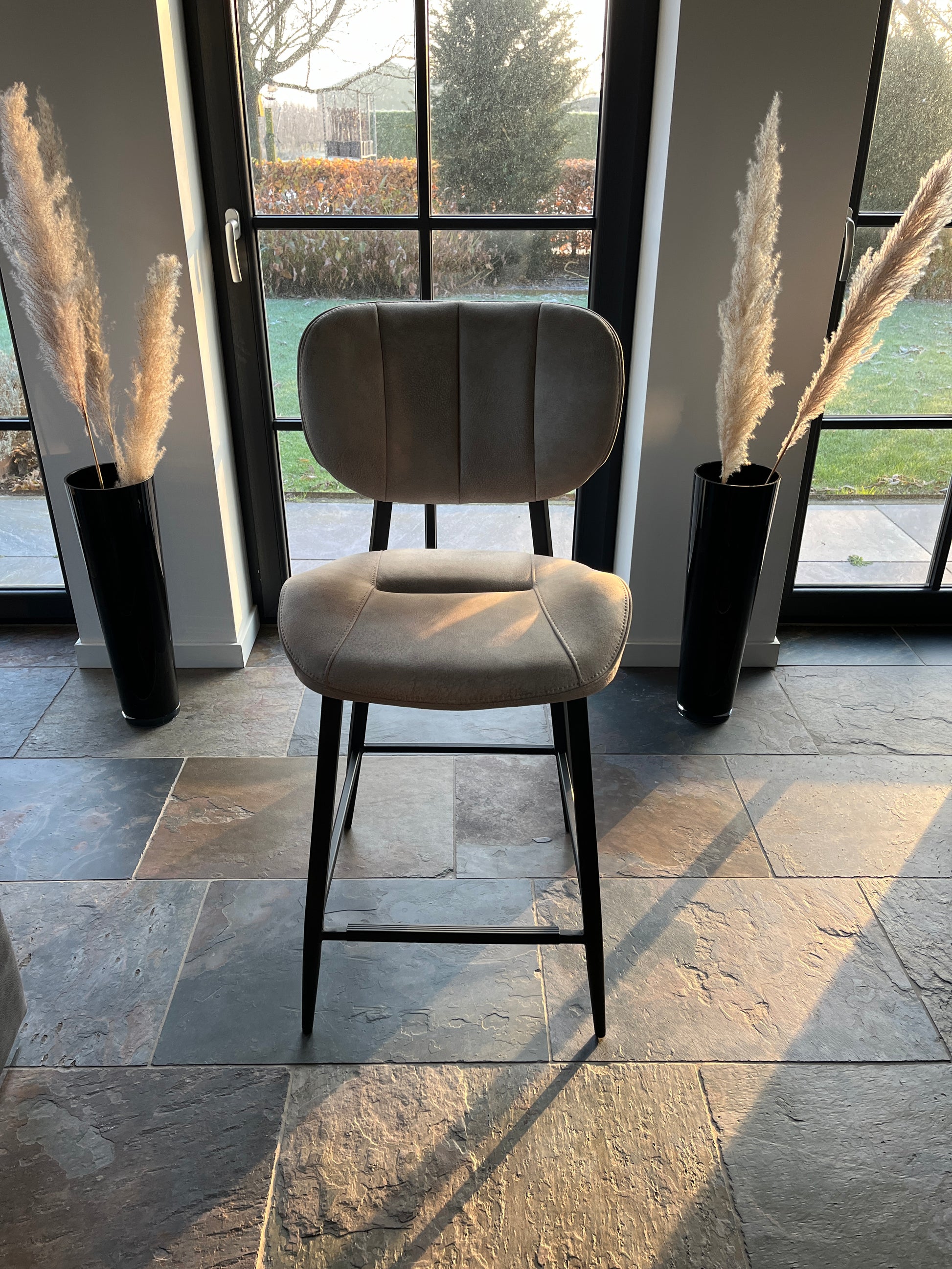 Barstoel "Carly" - 1 stoel in de kleur antraciet en taupe op voorraad