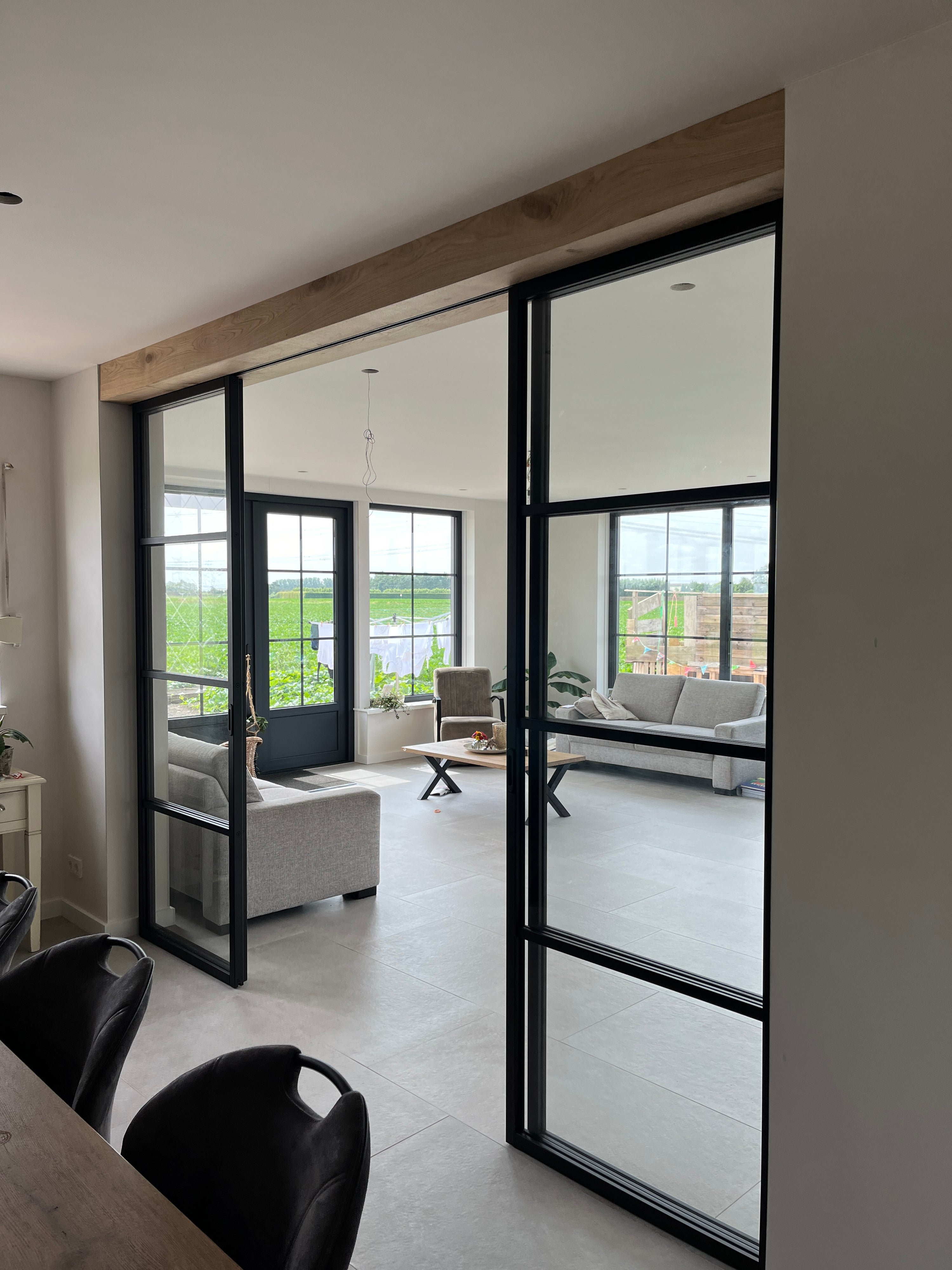 We werden benaderd door een klant die een aanbouw aan hun huis had gezet. Ze wilde de nieuwe woonkamer graag kunnen afsluiten van de keuken en zochten daarom naar een schuifwand.