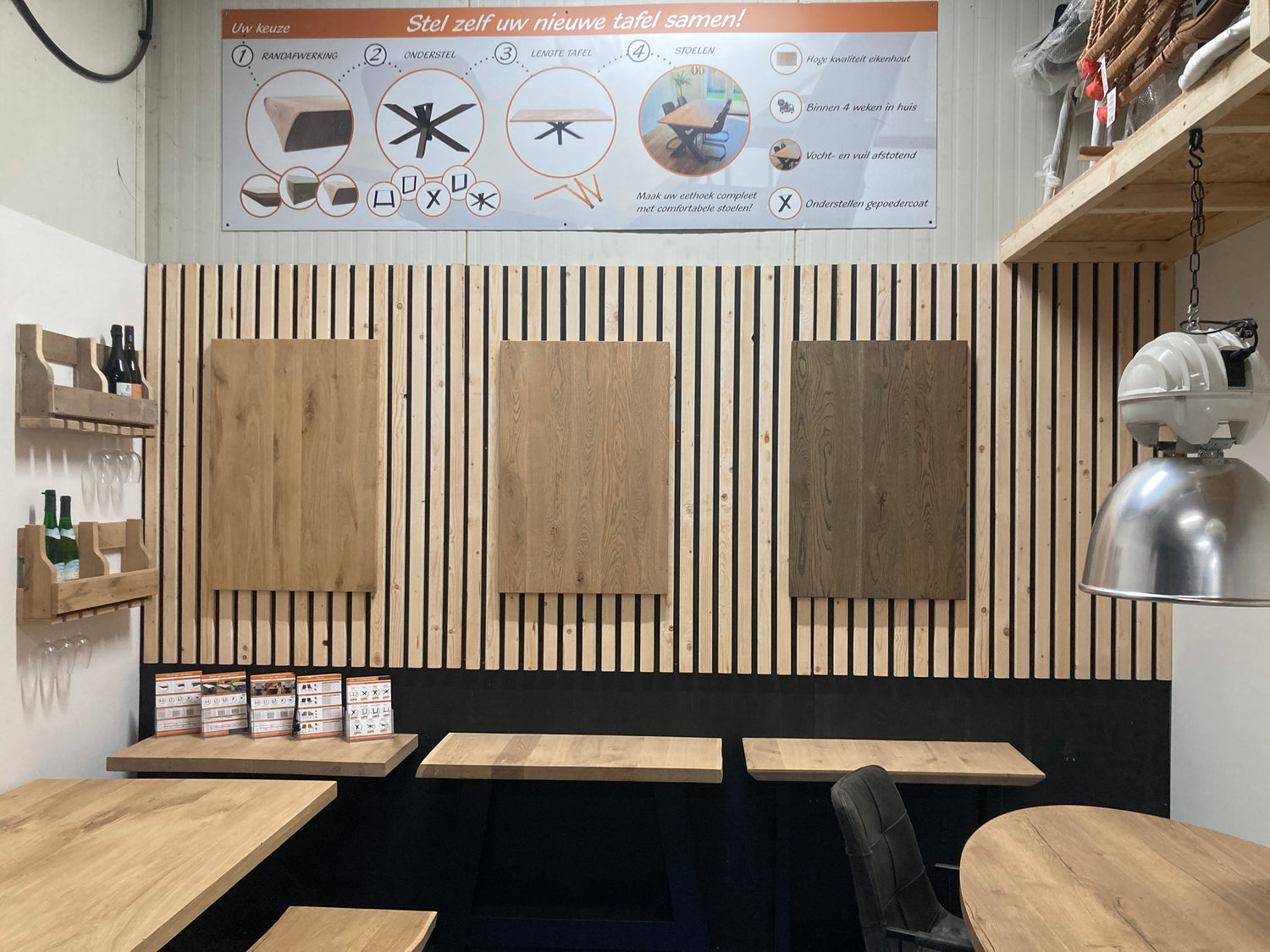 Een groot deel van onze producten worden handgemaakt in onze werkplaats. Op afspraak is onze werkplaats geopend voor klanten om te zien hoe wij werken. We hebben hier een ruim assortiment aan stoelen en andere producten op voorraad.