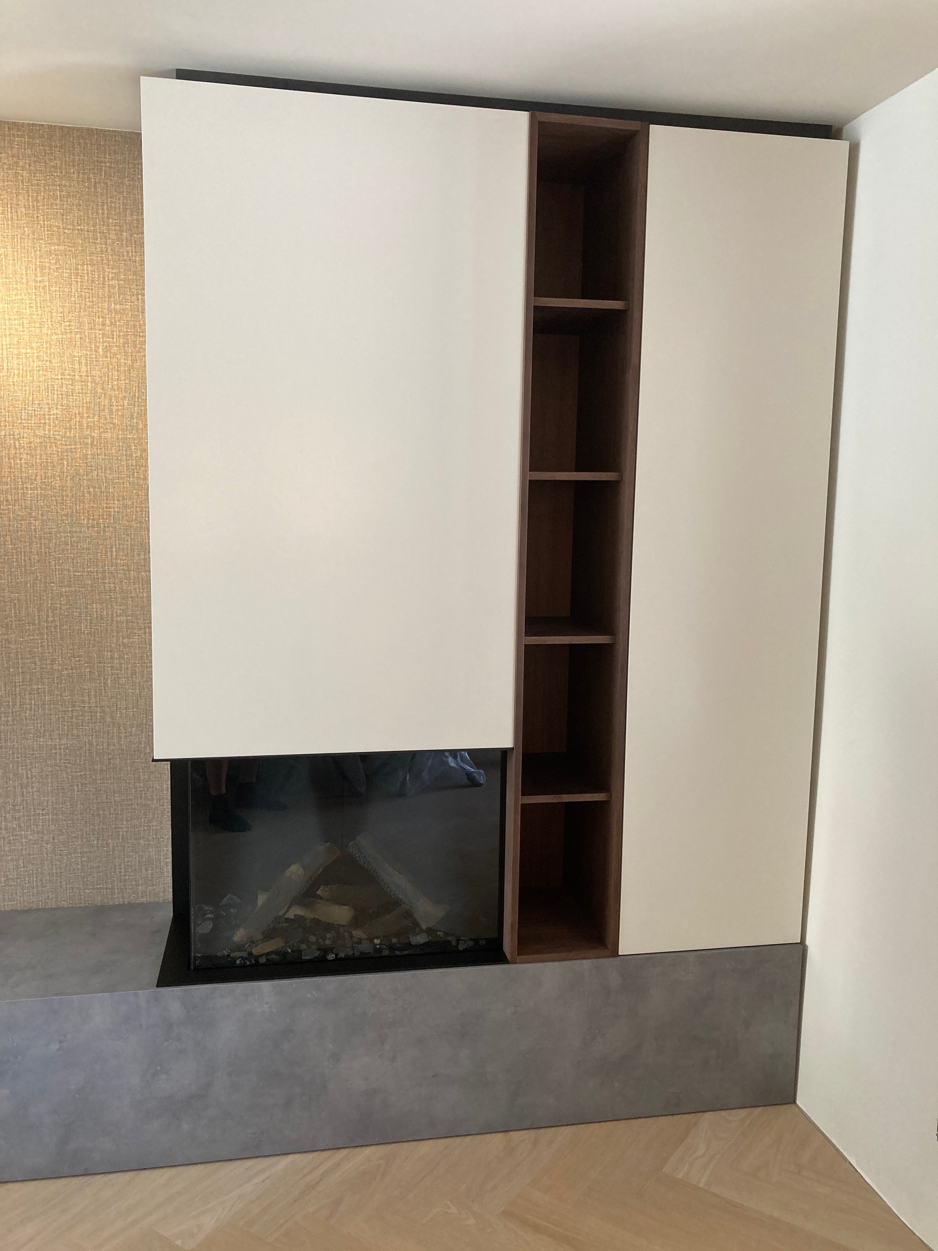 Een klant wil zijn elektrisch haard inbouwen in een wandmeubel. In overleg met de klant stelde we een ontwerp op. Hiervoor is het meubel op locatie ingemeten en in 3D uitgewerkt.