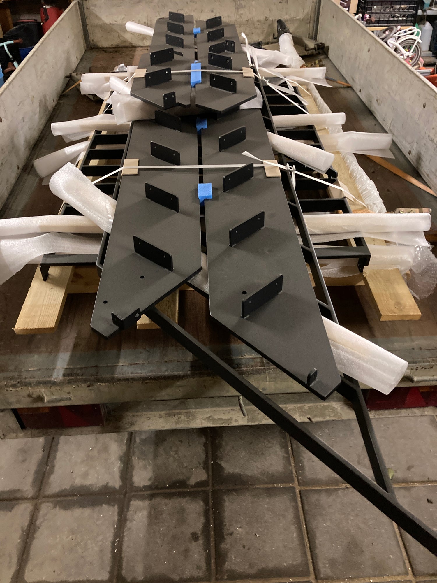 Na akkoord van de klant op het ontwerp is de productie opgestart. De staal constructie is in onze werkplaats samengesteld en afgelast.